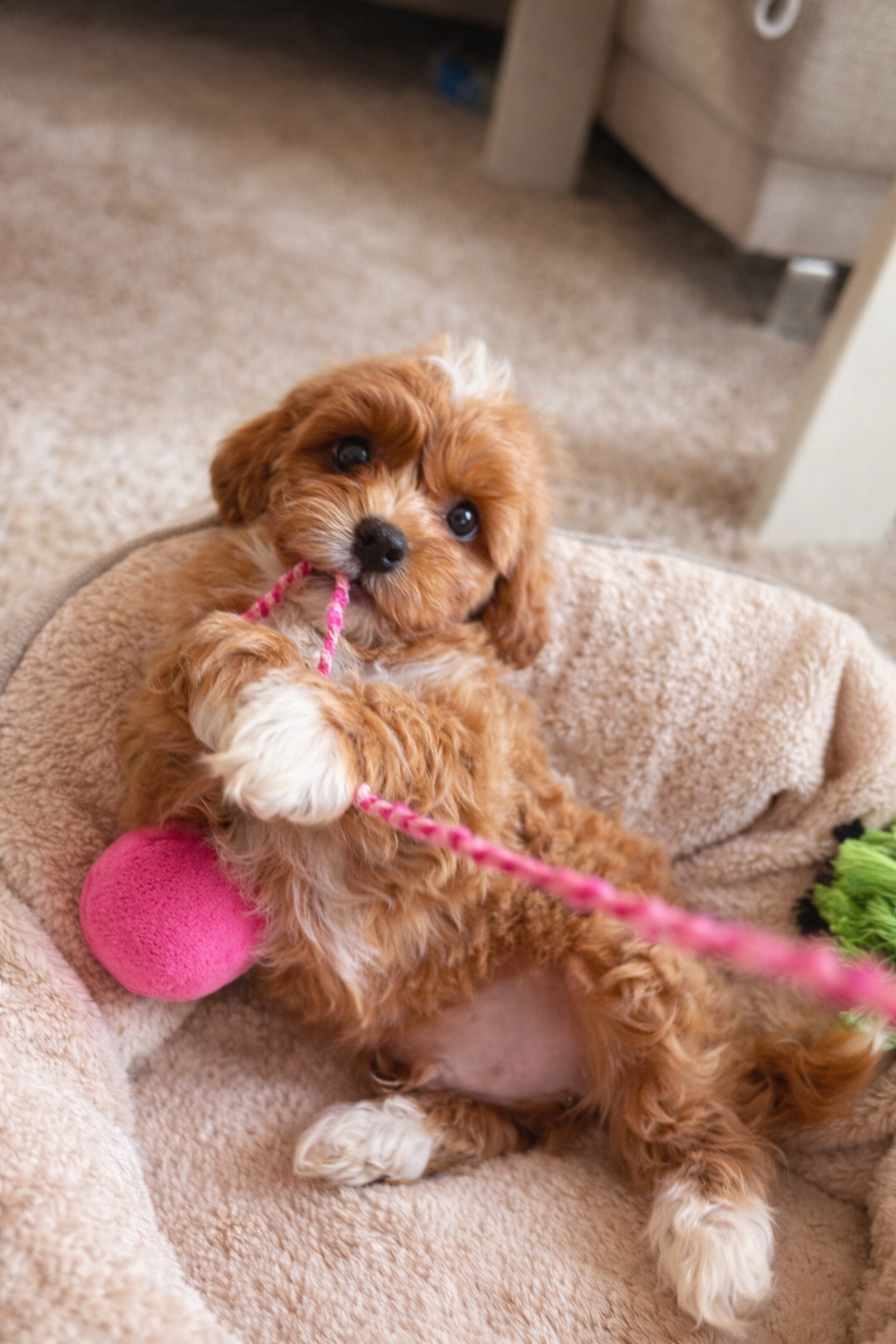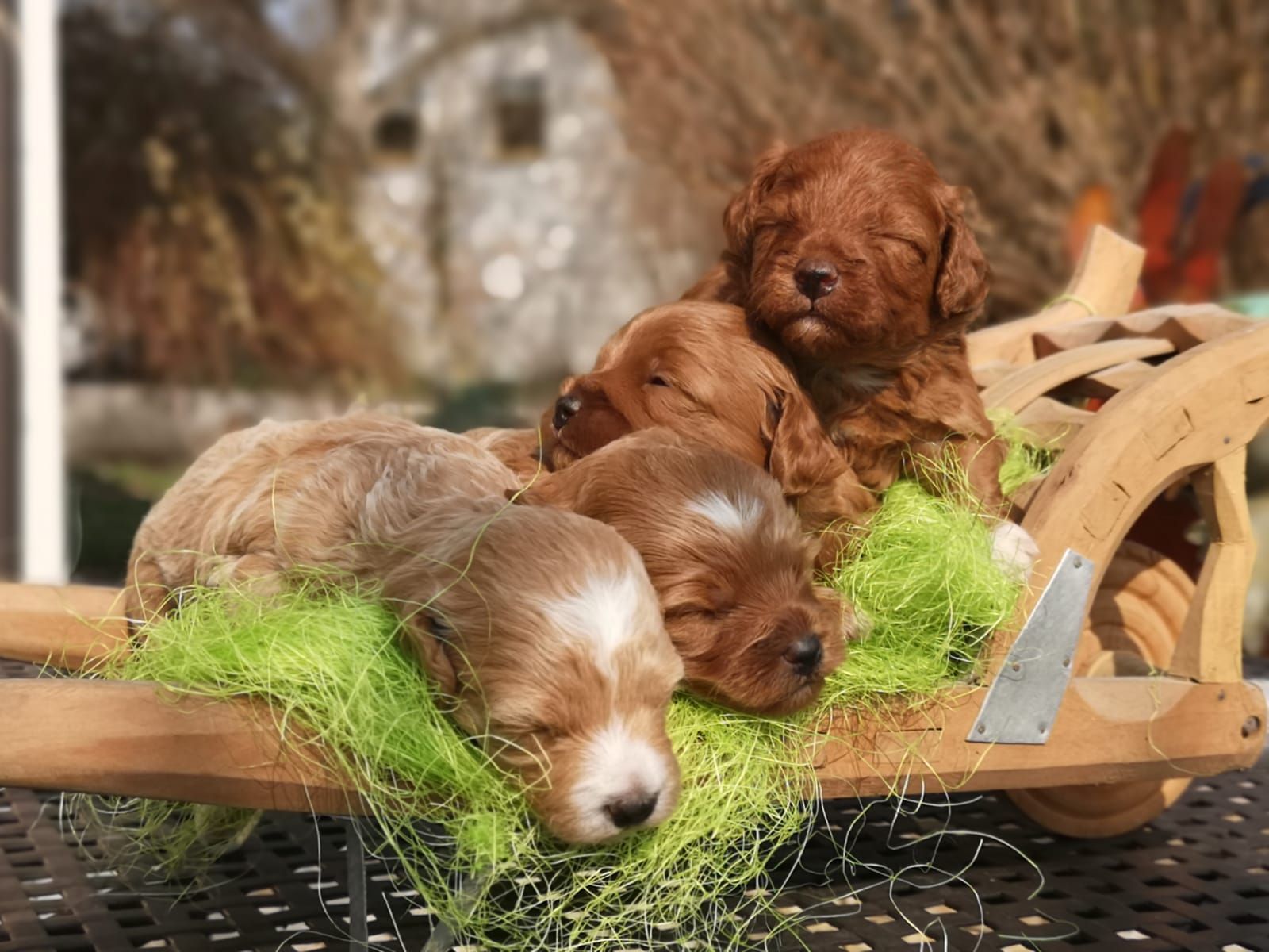 Wenn unsere Kleinen nach intensiver Aufzuchtzeit in ihre neuen Zuhause ziehen, dann haben sie schon viel gute Prägungsarbeit erfahren. Mit gezielten Lern- und Übungseinheiten bereiten wir unsere Schützlinge auf ihren neuen Lebensabschnitt als Familienhund vor. Davon profitieren unsere Welpenkäufer ein Hundeleben lang. Zu unserem Training gehört zum Beispiel die Gewöhnung an fremde Menschen/Hunde, Geruchsprägung auf die neuen Familien, Desensibilisierung auf Umweltreize/Stressgeräusche, Erlernen einer Beißhemmung, Auto- und Hundesalontraining, Abschalt-Übungen und einiges mehr.